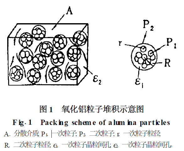 通過電子顯微鏡和X2射線寬化衍射法對(duì)活性氧化鋁進(jìn)行觀察發(fā)現(xiàn), 活性氧化鋁實(shí)際上是由比它小幾個(gè)數(shù)量級(jí)的微粒子凝聚而成, 而微粒子又是由比它更小的一次粒子聚結(jié)而成的聚結(jié)體, 同時(shí)在聚結(jié)體內(nèi)形成大小不等的微孔。因此活性氧化鋁的孔可分成三種類型: 即微粒子晶粒間孔; 聚結(jié)微粒子的一次粒子的晶粒間孔; 以及氧化鋁產(chǎn)品成型時(shí)形成的缺陷孔(見圖1)。因此可以說粒子間的空隙就是氧化鋁孔的來源, 進(jìn)一步講孔的大小及形狀完全取決于粒子大小、形狀及堆積方式。